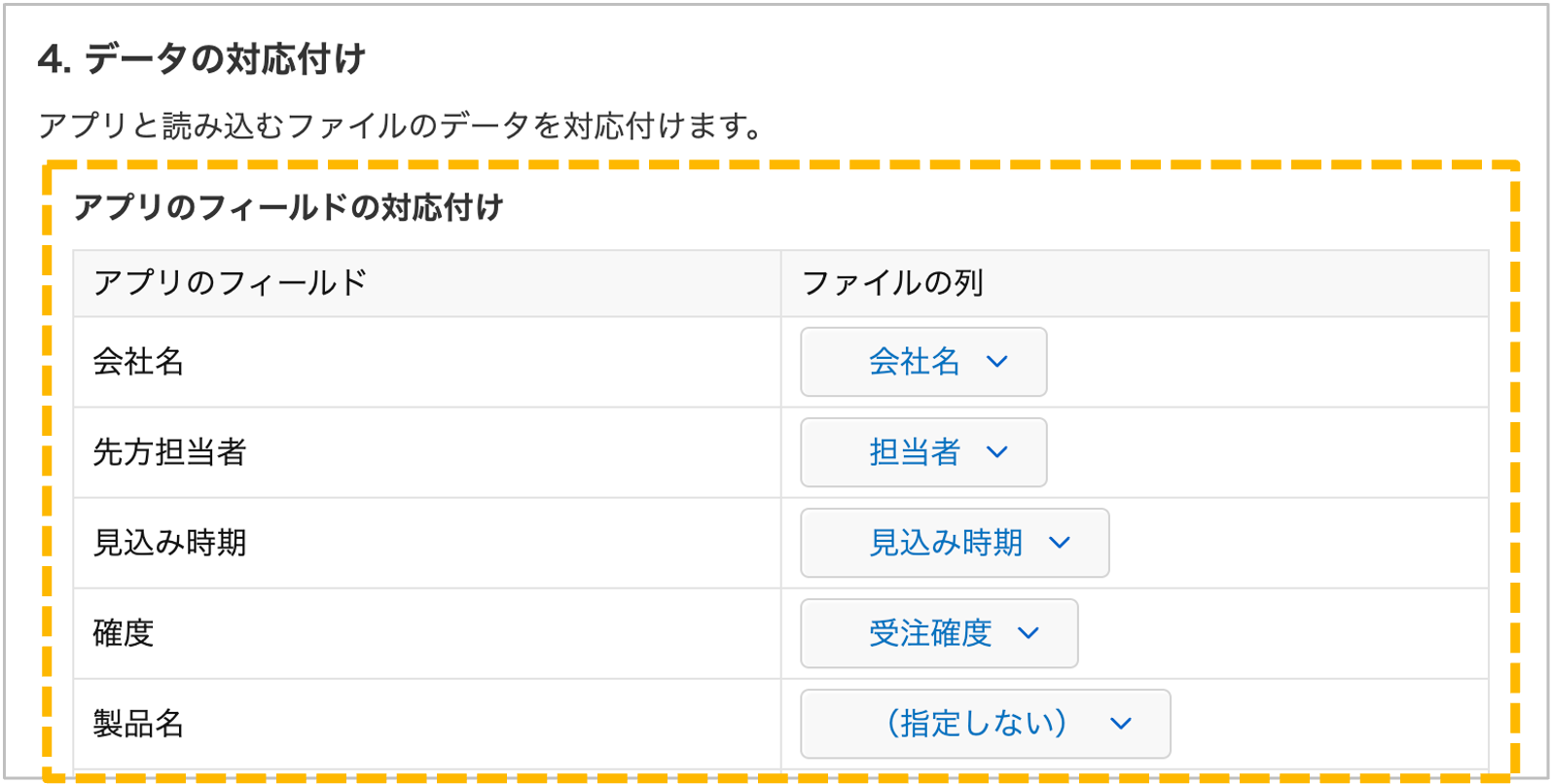 このボタンから対象のアプリの「ファイルから読み込む」画面を開き、修正したファイルを選択すると、前回の設定内容が引き継がれた状態で設定作業を再開することができます。これにより、読み込まれなかった行の再読み込みのたびに発生していた、文字コードの設定やアプリのフィールドの対応付けの設定などの手間が省略できます。