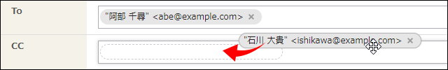 入力したメールアドレスの削除や移動入力したメールアドレスは、