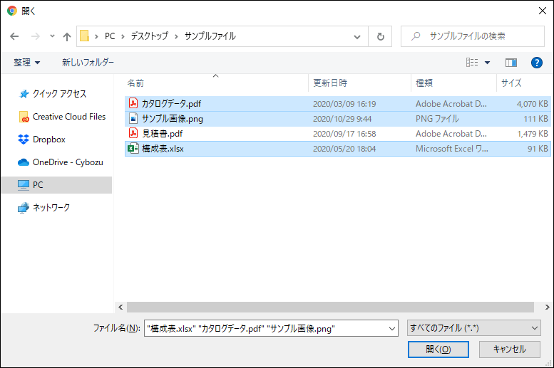 お使いのWebブラウザーが、複数ファイルの添付に必要な機能をサポートしている場合に利用できます。お使いのWebブラウザーが、サイボウズのクラウドサービスの動作環境であることを確認してください。