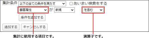 指定できる条件と選択できる演算子は、集計に使用する項目によって異なります。