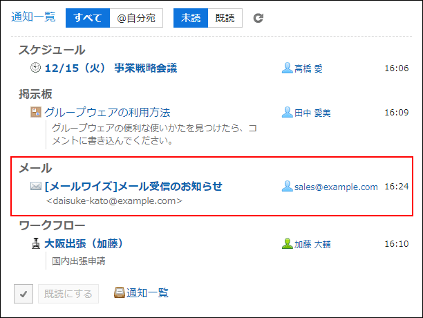 「通知一覧」ポートレット、および「通知一覧」画面に表示されます。 - サイボウズ Office:
