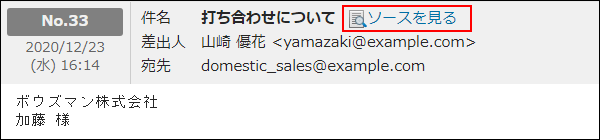 メールソースを表示すると、メールヘッダの情報を確認できます。