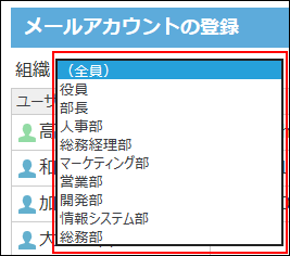ユーザーが所属する組織をドロップダウンリストから選択します。