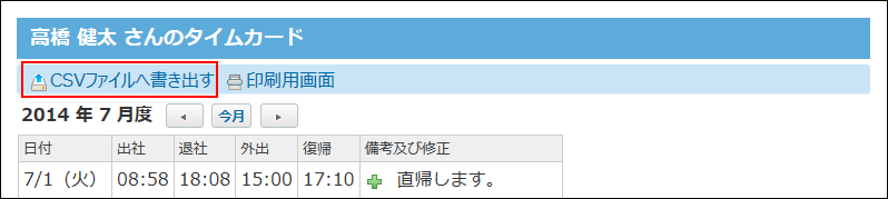 CSVファイルへ書き出される項目については、タイムカードのCSVフォーマットを参照してください。 -