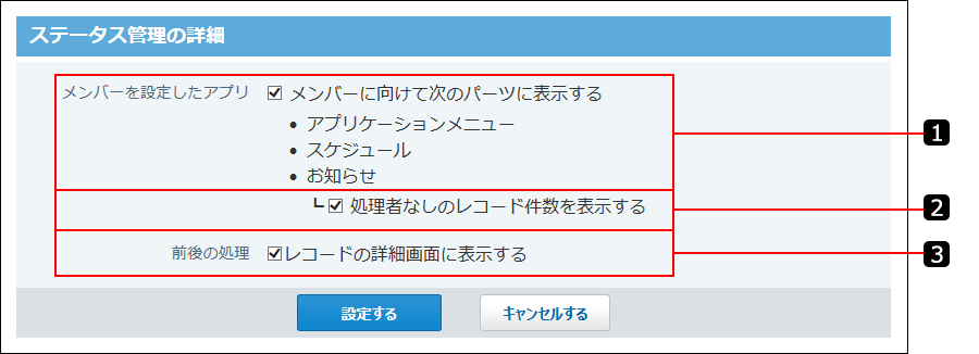 ステータス管理を有効にしている場合、ユーザーがよく目にするアプリケーションや画面に、ステータス管理アプリを表示できます。