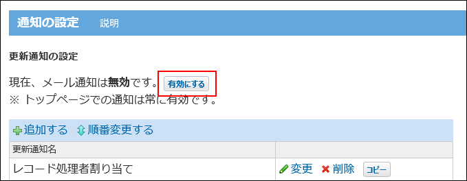 「通知項目」は、手順2の「通知内容」の設定で、「レコード内容」を選択している場合のみ有効です。