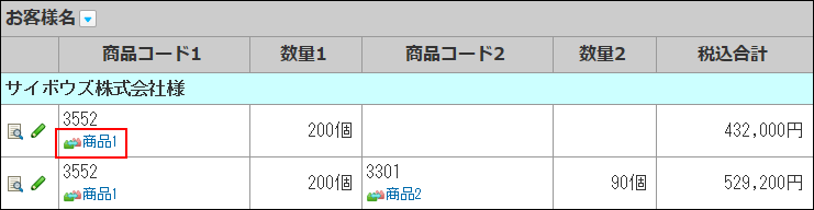 表示されるリンク名は、手順7で設定したリレーション名です。- 一覧画面での表示の例: