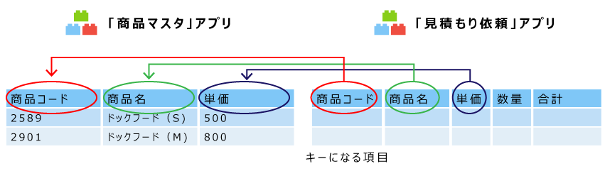 リレーションは、異なる2つのアプリの項目を関連付ける機能です。