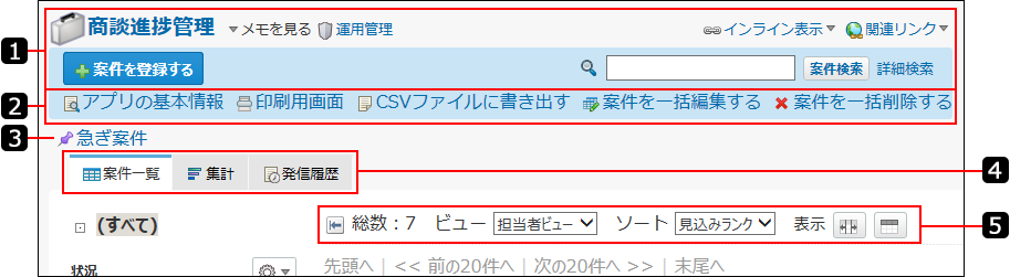 レコードの一覧画面やレコードの詳細画面の上部に表示されます。
