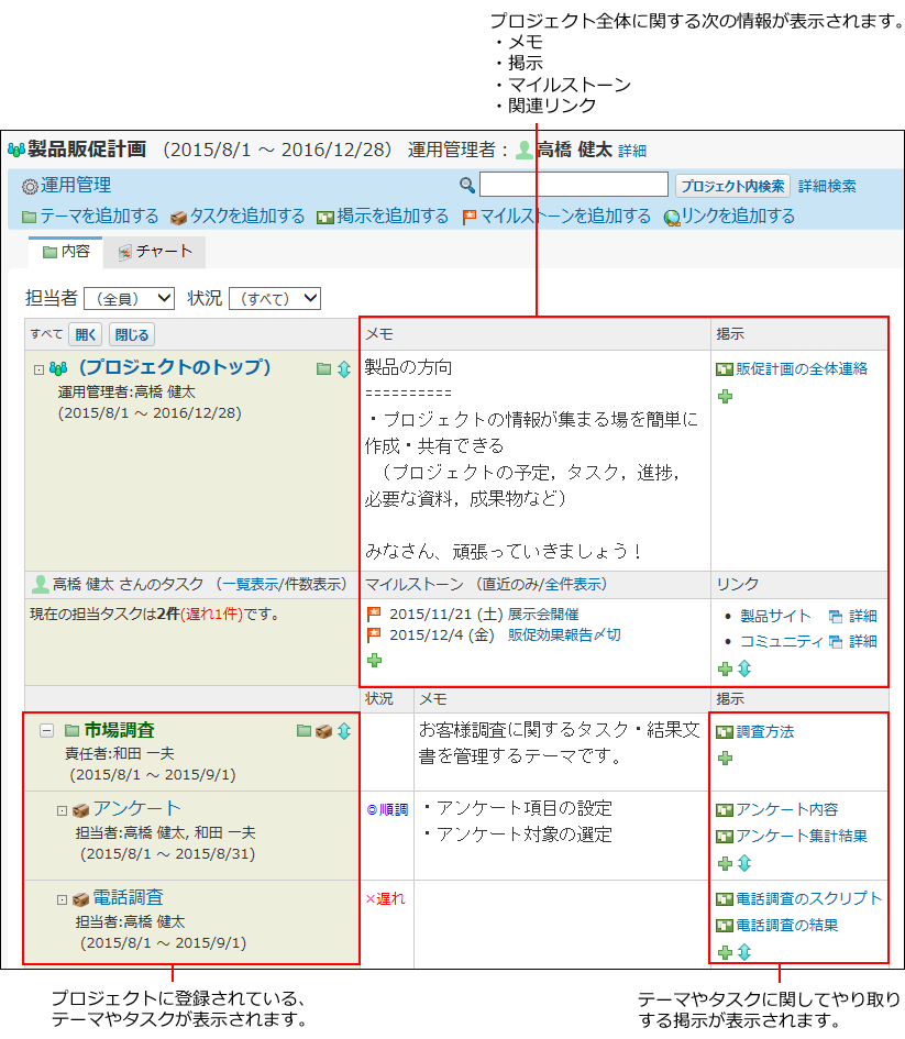 運用管理者/プロジェクトの登録者/タスクの担当者の場合
