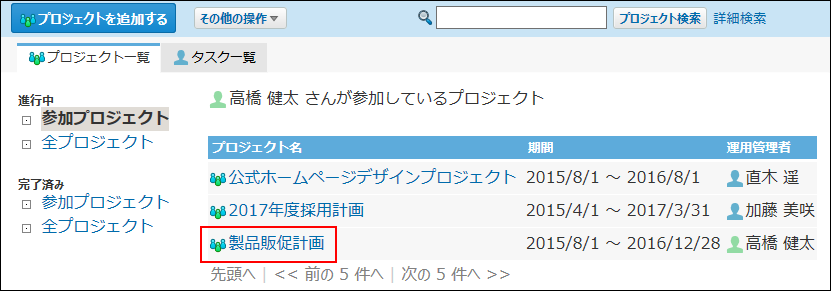ここでは、「プロジェクト(内容)」画面での操作を例に説明します。