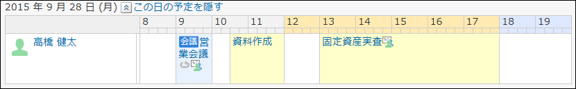 「予定の登録」または「予定の変更」画面で、自分の予定を確認します。