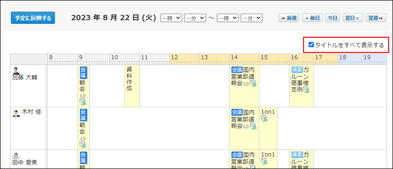 「タイトルをすべて表示する」を選択すると、予定のタイトルをセル内にすべて表示できます。