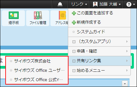 共有リンク集」をクリックすると、システム管理者が設定している共有リンクが表示されます。