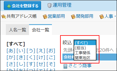 一定の条件に該当する会社だけを表示させたり、特定の日付以降に登録された会社だけを表示させたりできます。