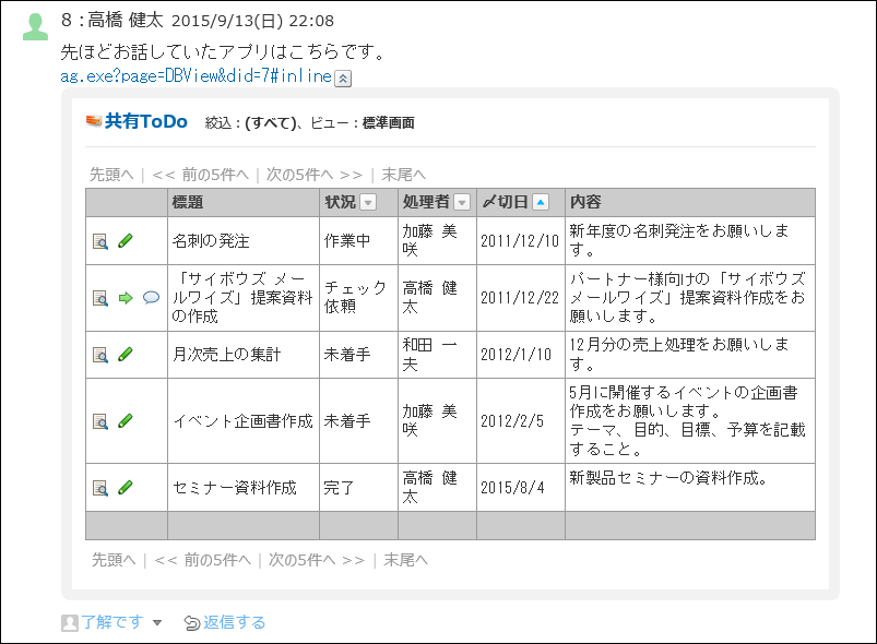 掲示のコメント欄カスタムアプリ アプリのメモ欄