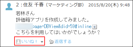 リアクションのリンク名(「いいね!」など)は、掲示の差出人が掲示を書き込むときに設定します。システム設定で、掲示の編集が許可されている場合に、差出人とシステム管理者は、あとからリアクションのリンク名を変更できます。