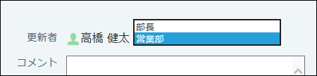 | 更新者 | 更新者が複数の組織に所属している場合、所属組織がドロップダウンリストで表示されます。