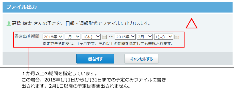 指定できる期間は最大で1か月です。1か月以上の期間を指定した場合、開始日から1か月までの予定が書き出されます。