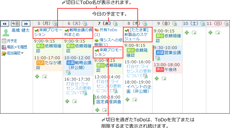 予定の一覧に、〆切日が設定されたToDoが表示されます。