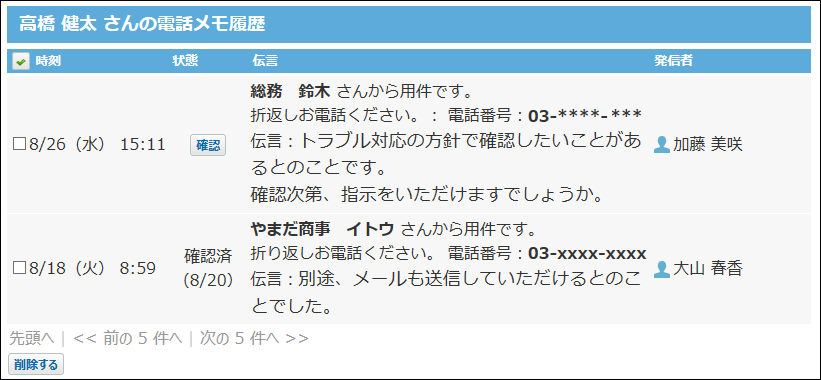 電話メモ履歴を確認する