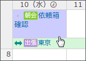 個人日、個人週、および個人年表示画面で、カーソルを合わせると、紫色で表示されます。