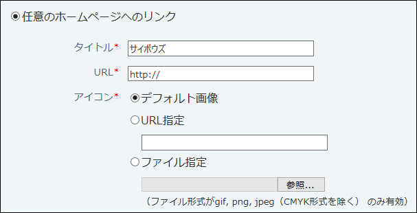 Web上にあるアイコンを使用する場合に選択します。入力欄にアイコンを指定するURLを入力します。