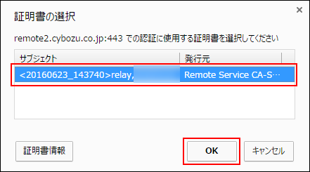 クライアント証明書は、システム管理者から配布されたものを選択します。